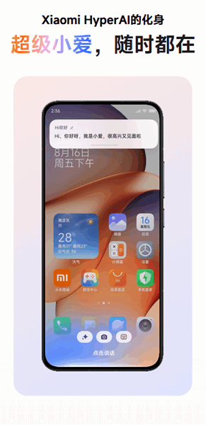 【超级小爱同学】是小米旗下的AI助手,它能为你带来丰富多样的生活服务:学习成长、娱乐休闲、健康养生、生活百科等,让你在日常生活中获得更多的便利和乐趣。此外,这款AI助手还提供了全面的生活指数监测、天气提醒以及生活缴费等多项实用功能,让你的生活变得更加便捷和高效。超级小爱同学的语音输入法(请你使用手机上安装“超级小爱同学”或“超强”音效:乐响小米MIUI12,是为小米手机用户打造的,超强的手机系统,可以自定义设置各种音效。喜欢的朋友赶快下载吧!