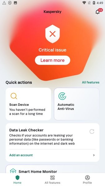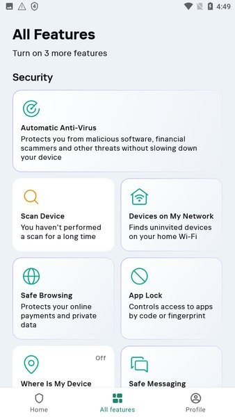 卡巴斯基是全球著名的保护中心,在使用中有着极为全面的安全功能,可以很好的保护用户的安全,让用户可以放心的使用,而且还提供了一个强大的隐私保护功能,能够有效的保护用户的个人信息和隐私,让你远离窥探者隐藏的数据和应用。