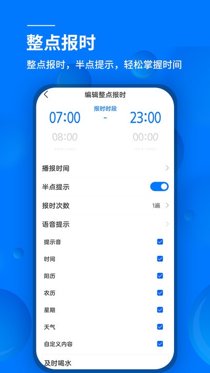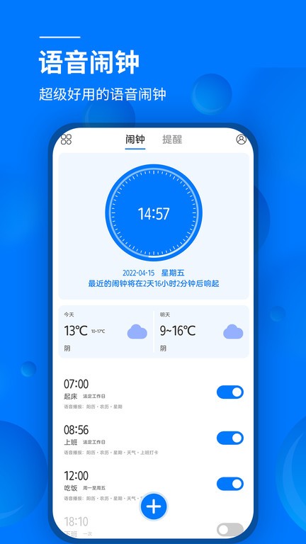2、语音闹铃与提醒app支持自定义闹铃音效,可根据自身喜好进行个性化设置,让你每天准时起床,不再遗憾错过重要的事;
