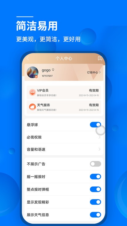 1、语音闹钟与提醒app支持语音闹钟铃声音量调节、自定义闹钟铃音量的设置;