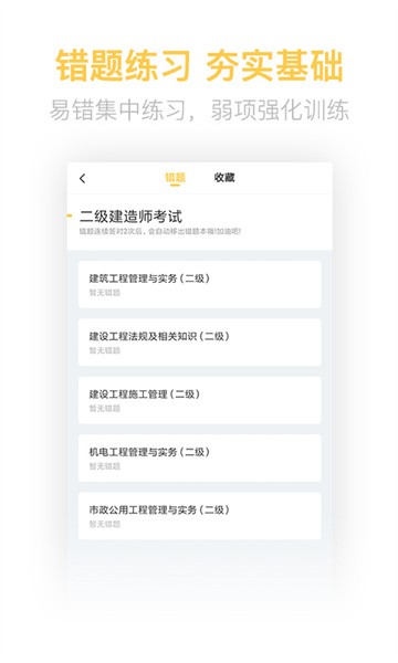 新增押题模块,收录二级建造师考试高频考点及常错题,以便学员加强记忆和记忆二级建造师亿题库APP是款非常不错的手机题库软件,通过我们的下载和使用我们的用户们就能轻松学习到超多的知识内容。软件方便的功能和体验也适合我们进行各种刷题练习。喜欢的朋友不妨速速下载试一试吧!