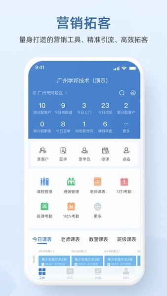 学邦科技校长APP是学邦集团旗下的一款针对大学生的综合教育培训服务平台,为学生提供专业、高效的在线学习工具,包括在线直播课、在线练习、考试测评、在线课堂等功能,帮助学生快速提升学习成绩,实现高效学习,并获得优质的服务。学邦科技主任端拥有丰富的资源库,涵盖了高校的各个学科领域,满足学生不同的学习需求。