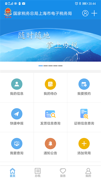上海电子税务局app是一款专门为上海地区的用户打造的线上税务登记申报平台,在上海电子税务局app中用户能够直接进行身份验证认证操作哦,而且上海电子税务局app还拥有丰富的学习资料让你轻松掌握各类税务知识。上海电子税务局网上申请登记app最新版是一款专门为上海市电子税务局打造的手机软件,这款软件能够帮助上海当地的居民朋友在线办理相关事项,用户可以直接在手机上操作各种业务,需要的用户赶快来下载吧!