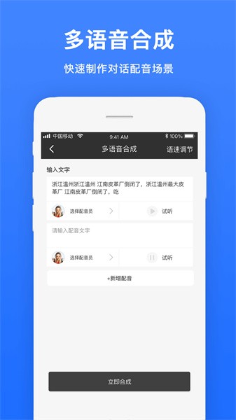 -配音创作:各类配音场景下任意添加,让文字变成声音;