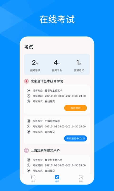 线上考试服务平台是专门为艺术类考生们提供的一个在线报考、报名服务的手机应用软件。通过线上考试服务平台app可方便地查询高考分数等信息并及时获得最全面的资讯内容供大家了解!