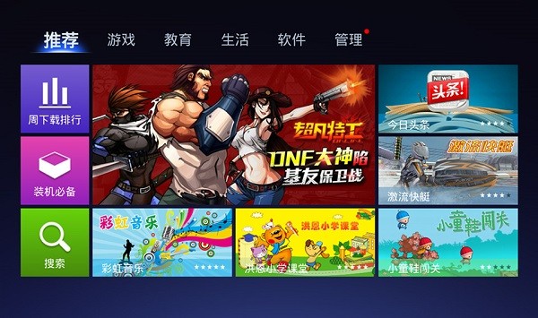 软件是专为智能电视打造的应用市场,里面有各种各样的电视端软件都可以免费下载安装到电视上运行。