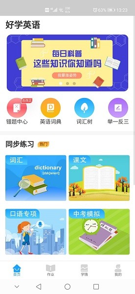好学英语学生使用线上英语学习软件是一个专门为学生提供的线上英语辅导应用。好学英语学生利用线上英语学习软件能够随时随地的对英语知识进行学习,而且好学英语学生使用线上英语学习软件还提供了各种趣味性的学习方式让孩子爱上英语。