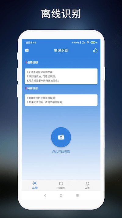 离线车牌识别app功能: